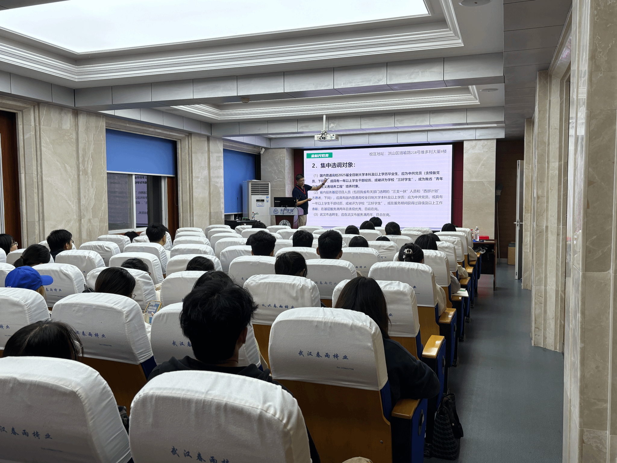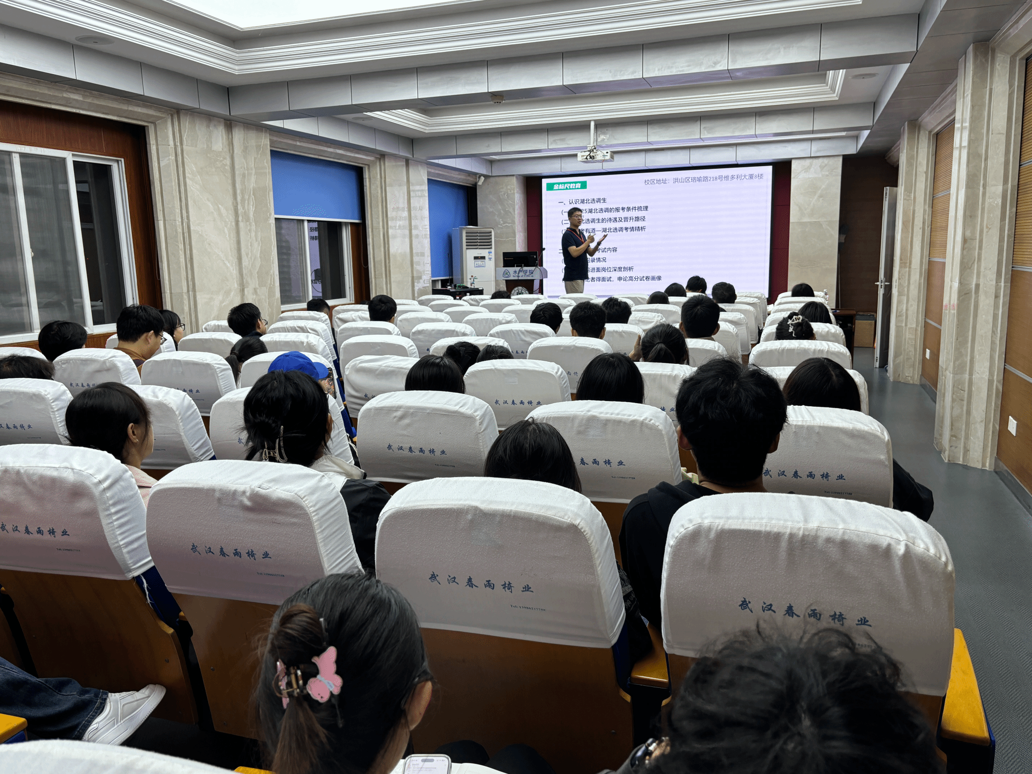 精准服务学生就业需求,提升学子公职考试竞争力,2025年10月15日晚,91吃瓜网 特邀金标尺公考培训机构资深讲师张轩,为有意投身公共部门的同学们带来一场内容丰富、讲解生动的公务员考试培训讲座。本次讲座聚焦选调生政策与国家公务员考试两大核心板块,旨在为学子们的公职之路指引方向、夯实基础。