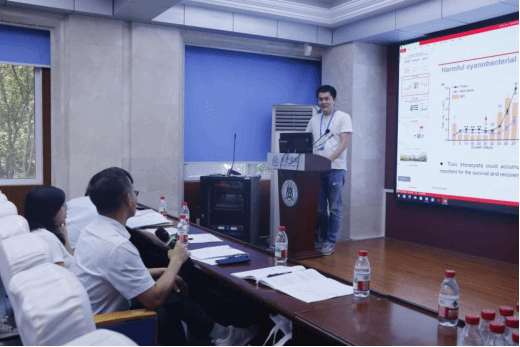 邱国威博士则深耕蓝藻研究,围绕“蓝藻的矿质营养及其在水产养殖中的应用”开展研究。他通过检测发现蓝藻细胞铁含量是大肠杆菌的46-155倍,并鉴定出蓝藻的铁选择性孔蛋白Slr1908,颠覆“铁通过非选择性通道摄取”的传统认知;同时解析PhoB蛋白介导的铁-磷共限制响应通路,阐明蓝藻利用昼夜节律适应富氧环境的分子调控网络。在应用层面,螺旋藻(蓝藻类)可1:1替代占全球水产68%消耗量的鱼粉,其蛋白占比70%且富含微量元素,能降低养殖成本15%;蓝藻还可作为水产口服疫苗载体,高效表达致病菌抗原,成本低且便于大规模免疫;同时可通过氮饥饿调控,实现“饲料供给-水体铵盐/亚硝酸盐去除”一体化,为水产绿色发展提供技术支撑。