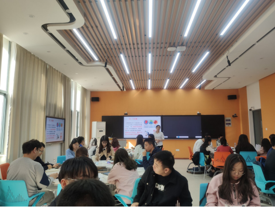 课程开始的前两天,汤蓉老师就通过长江雨课堂给同学们推送预习内容,布置相关思考题,让大家通过课前的预习讨论,小组合作共同完成题目,并以PPT的形式在课堂上进行展示。在上课之前,同学们和参与听课的老师们都早早地来到教室,将小组准备好的讲解内容投放在教室的共享屏幕上,提前预习活页上的学习内容。