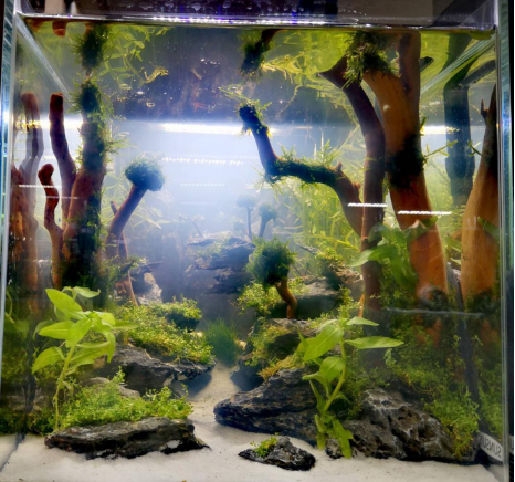 王春芳、余丽琴两位老师带领6名学生组成四支队伍参赛。经过一天的激烈对决,共获得一等奖一项,二等奖三项。其中张楚一,沈晓强,王瑞琪的作品《神龛》获大缸组一等奖,黄茜璇作品《Utopia》,沈心彦作品《藏海》,李顺尧作品《泉池》分获中缸组二等奖,微型缸组二等奖,水陆缸组二等奖。