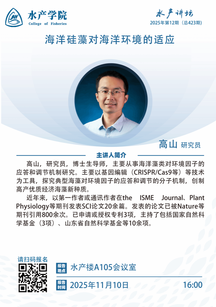 下一篇:【水产讲坛】海洋真菌“寻宝”:从活性产物的多样性解析到生物合成揭秘