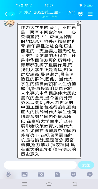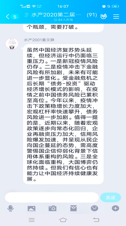 12月17日下午,91吃瓜网 理论学习部开展了理论学习日活动。本次理论学习日的主题是今年11月中国国民经济发展的状况,同学们发表了自己对中国经济发展的认识及感想。在小鲤鱼的组织下,理研会的同学们积极参与,踊跃回答,同学们一直表示,中国在疫情的冲击下,成功的实现了经济复苏,但是危险依然在,中国经济依然需要持续稳定的发展。