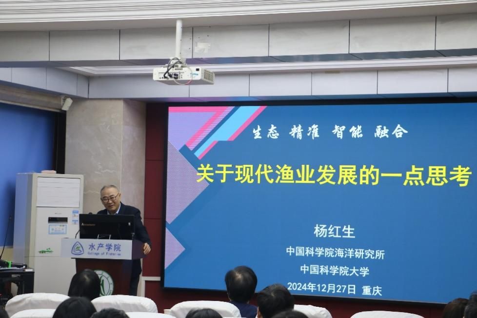 2025年第03期(总416期)“水产讲坛”在水产楼A105天辰报告厅举行,特邀中国科学院杨红生教授作了题为“关于现代渔业发展的一点思考”的分享。本次讲座由副院长高泽霞教授主持。