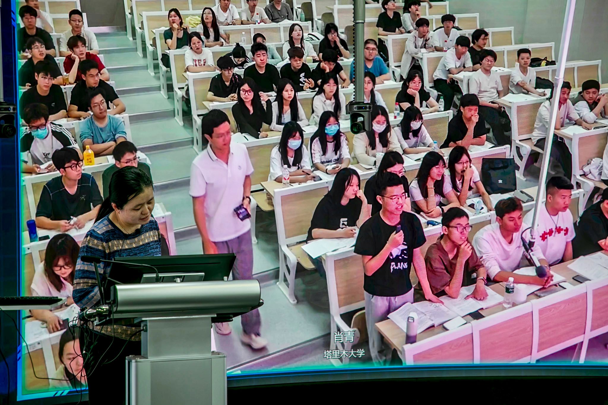 塔里木大学的同学们在跟老师互动(苏畅摄)