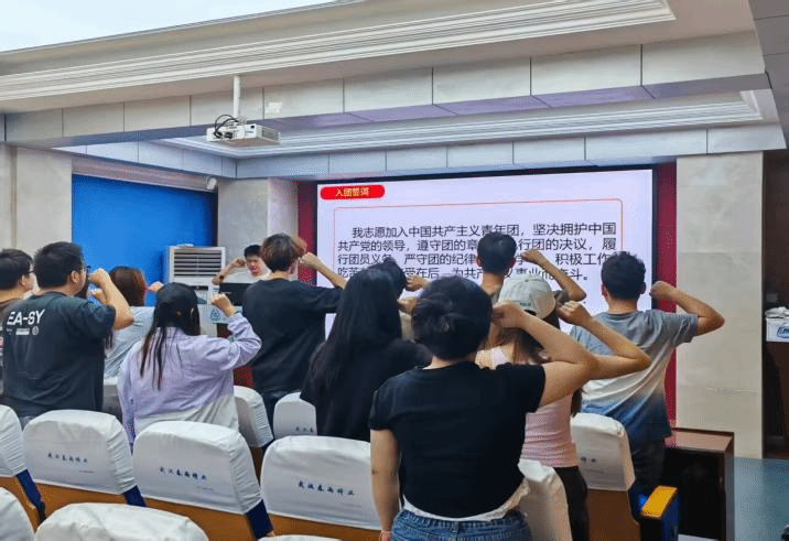 在水产楼A105举办2025年春季新团员入团仪式。学院团委组织部负责人孙广浩、优秀团员代表叶姝涵及新发展的15名团员和院团委组织部工作人员参加本次仪式。