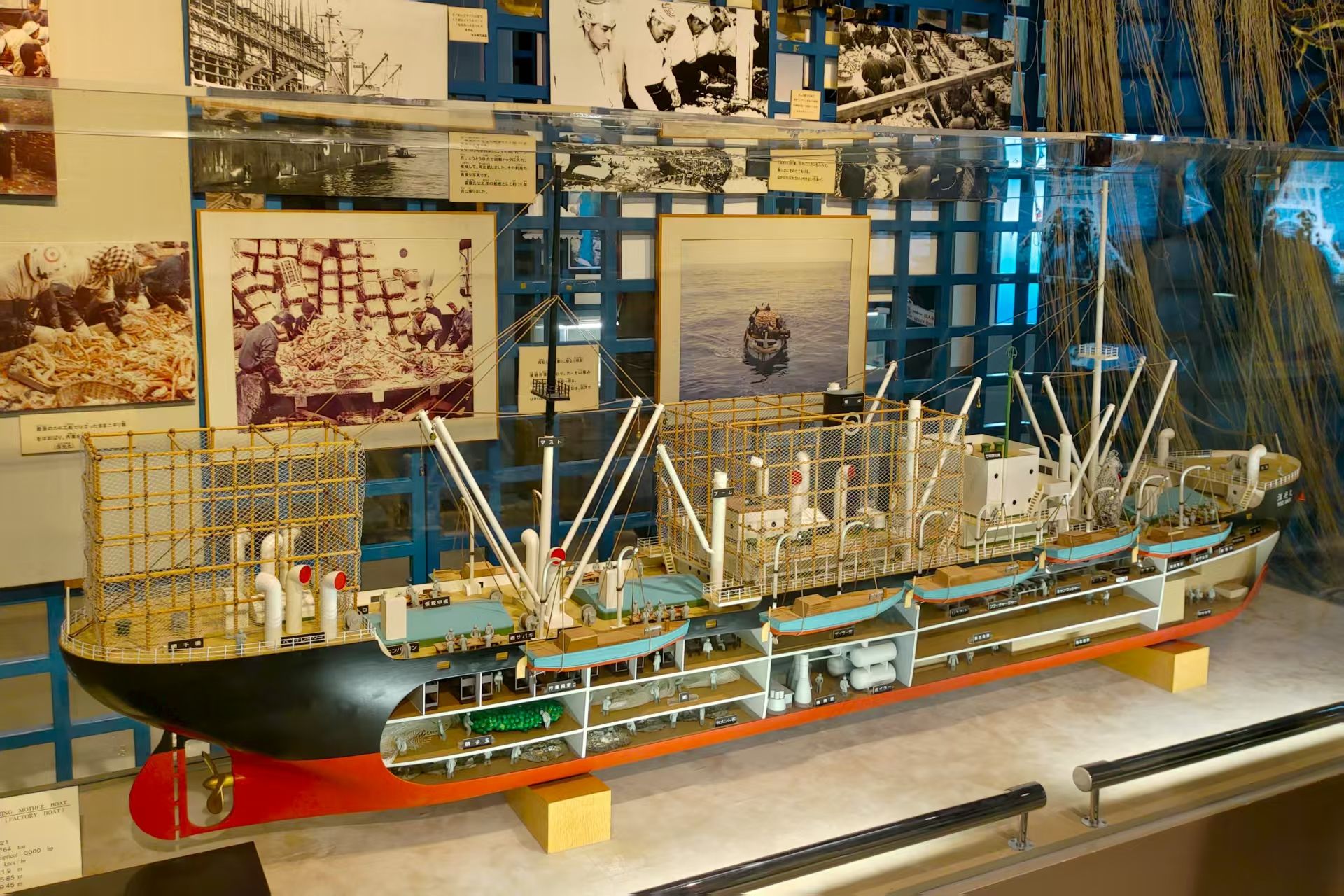 随后,同学们参观了函馆市北洋博物馆。这里除了大量北洋时期相关的文献、照片,还陈列着不少渔业标本、捕捞工具。三分钟模拟航行体验区让同学们提前体验了船上生活。