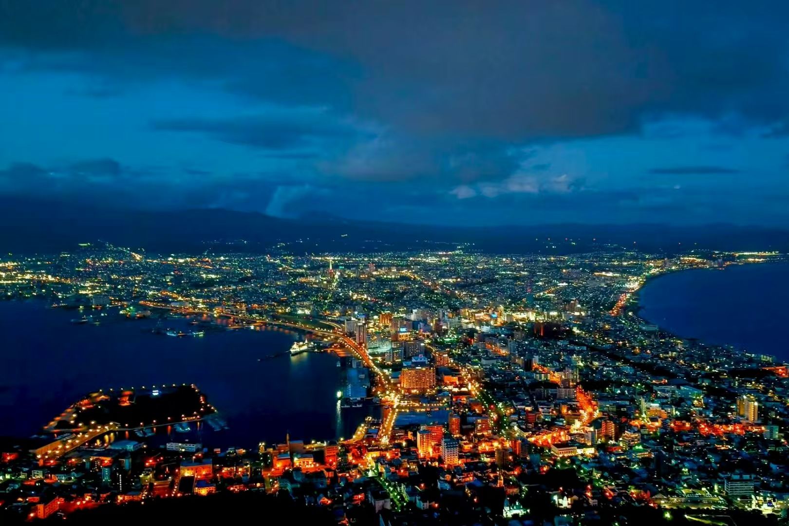 实践团队成员在函馆山顶拍摄的夜景(韩艺龙摄)