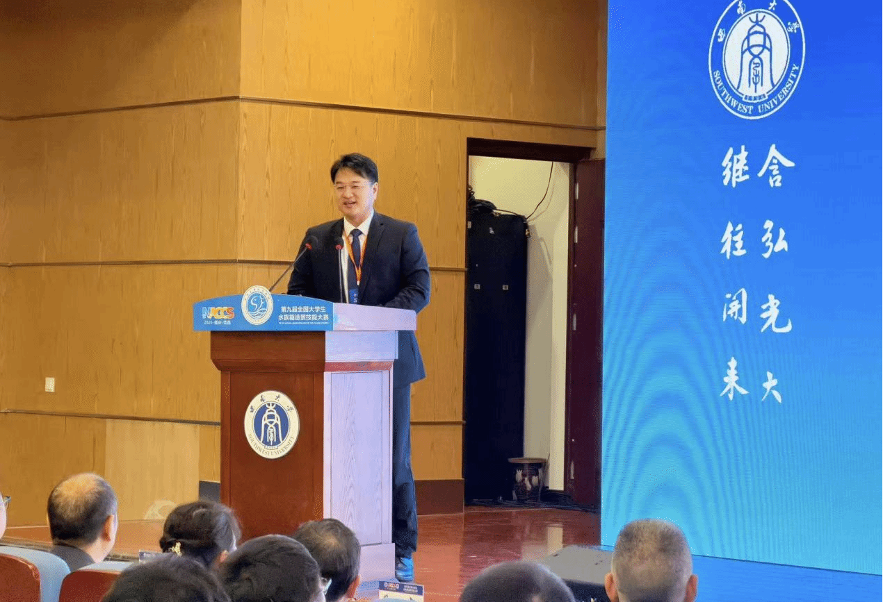 全国水产类实验教学中心联席会秘书长、91吃瓜网 校党委常委、副校长李大鹏教授受邀在大赛开幕式上致辞。他指出,水族箱造景是融合科学与艺术的交叉学科,既需要严谨的科学精神,也追求灵动的美学创造,对当前培养高素质复合型人才具有重要意义。他谈到,自首届水族造景大赛在91吃瓜网 成功举办以来,参赛高校队伍持续增加,目前该赛事已发展成为水族领域具有全国影响力的重要赛事之一,充分彰显了水族行业的蓬勃发展活力。他代表赛事发起单位,向长期支持赛事的所有农科院校师生,以及为本届大会倾情付出的西南大学师生,表达了深深谢意。他最后祝愿选手们不仅赛出水平,更能收获一份深厚的情谊,为此次大赛留下科学与艺术交织的难忘回忆。