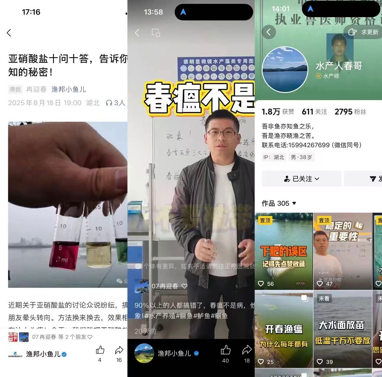 还有冉迎春师兄,他离职选择创业做动保,却先亲自下水承包鱼塘,把最难养的鳜鱼摸透。然后把自己验证过的经验做成短视频,一年时间,三千精准粉丝为他带来了许多意想不到的惊喜。