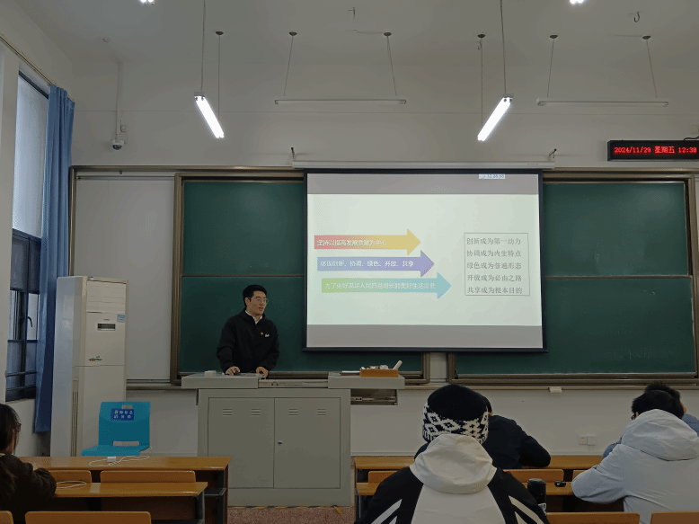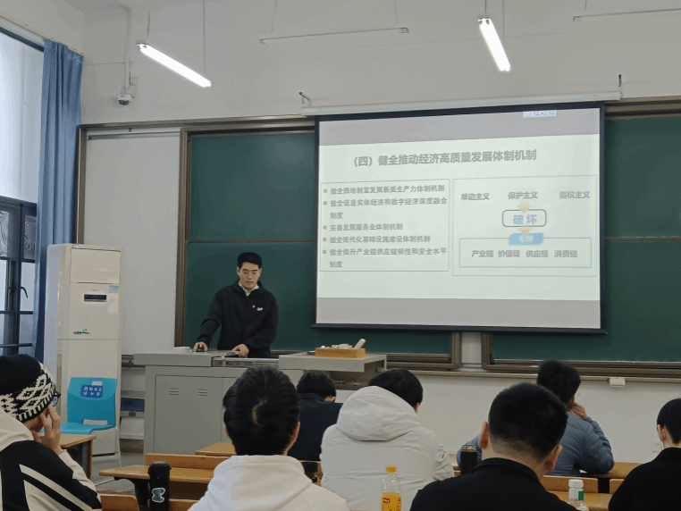 水产养殖学本科生第三党支部在四教A209举行了主题为《发展新质生产力,增强高质量发展新功能》的“精读精讲”宣讲活动,支部党员牛鑫涛进行领学。