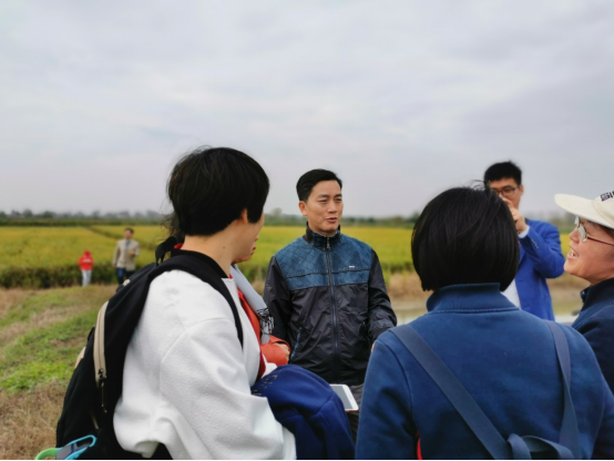 双水双绿研究院院长顾泽茂教授讲述基地的组成及科研和产业融合情况,让大家对双水双绿有了更直观的了解和认识。“双水双绿”是充分利用平原湖区稻田和水资源的优势实行稻田种养,使绿色水稻和绿色水产协同发展,做大做强水稻、水产“双水”产业,做优做特绿色稻田、绿色小龙虾等“双绿”产品,让生产过程来洁净水源,优化环境,实现产业兴旺、农民富庶、乡村美丽的目标。