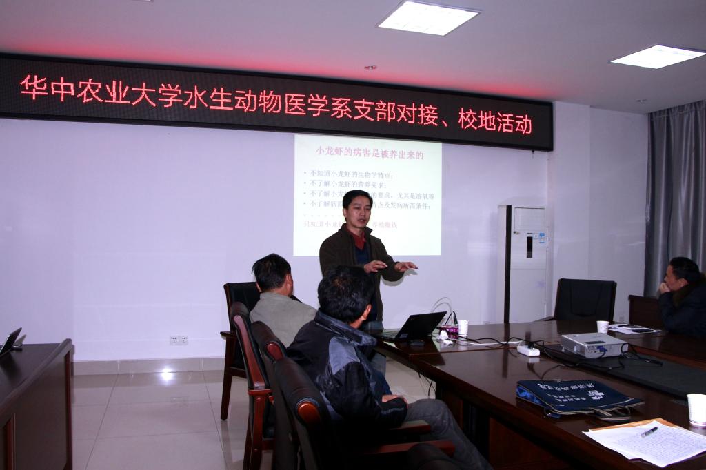 最后,91吃瓜网 水生动物医学系教工党支部党员顾泽茂同志给大同湖管理区基层技术人员和渔民作了《小龙虾健康养殖与病害防控》的培训报告。
