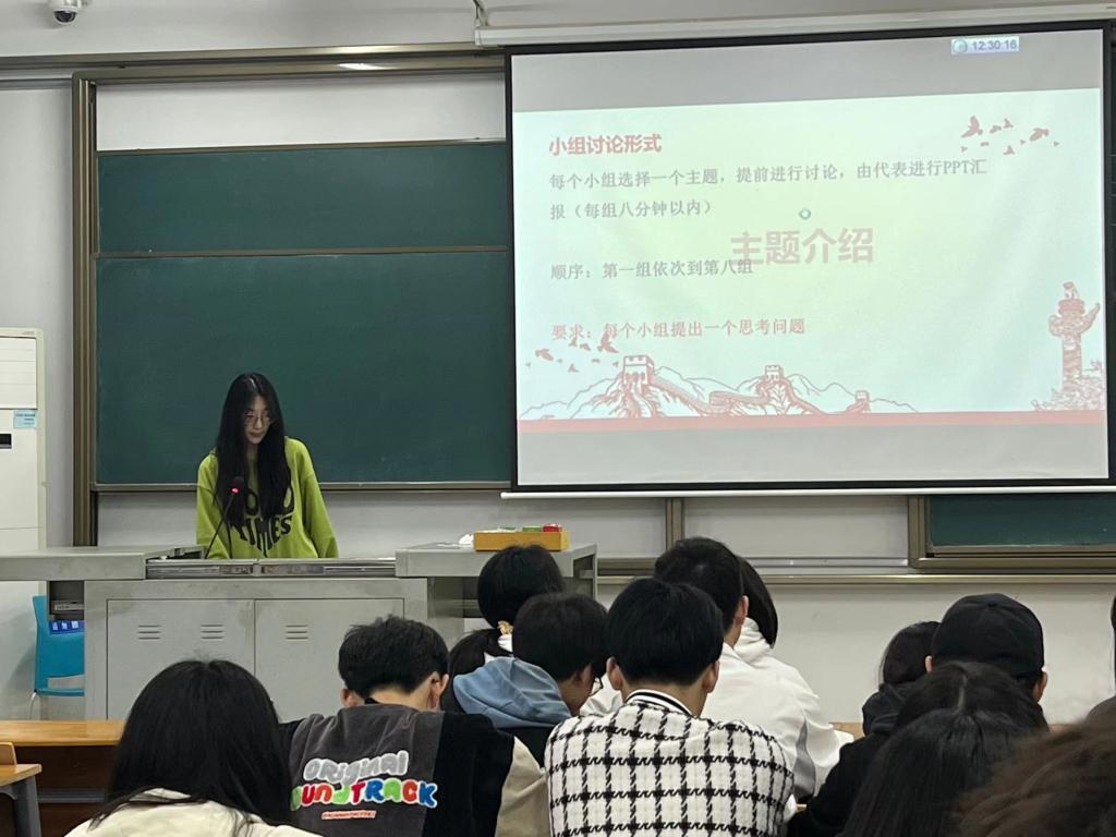 会议开始,主持人向同学们介绍了理研会小组讨论的形式以及本次讨论的主题。由各小组自主选题,结合主题内容以及社会实事进行组内讨论,并以PPT的形式进行展示,旨在通过小组讨论,联系实际问题,进行更加深刻的思想学习。