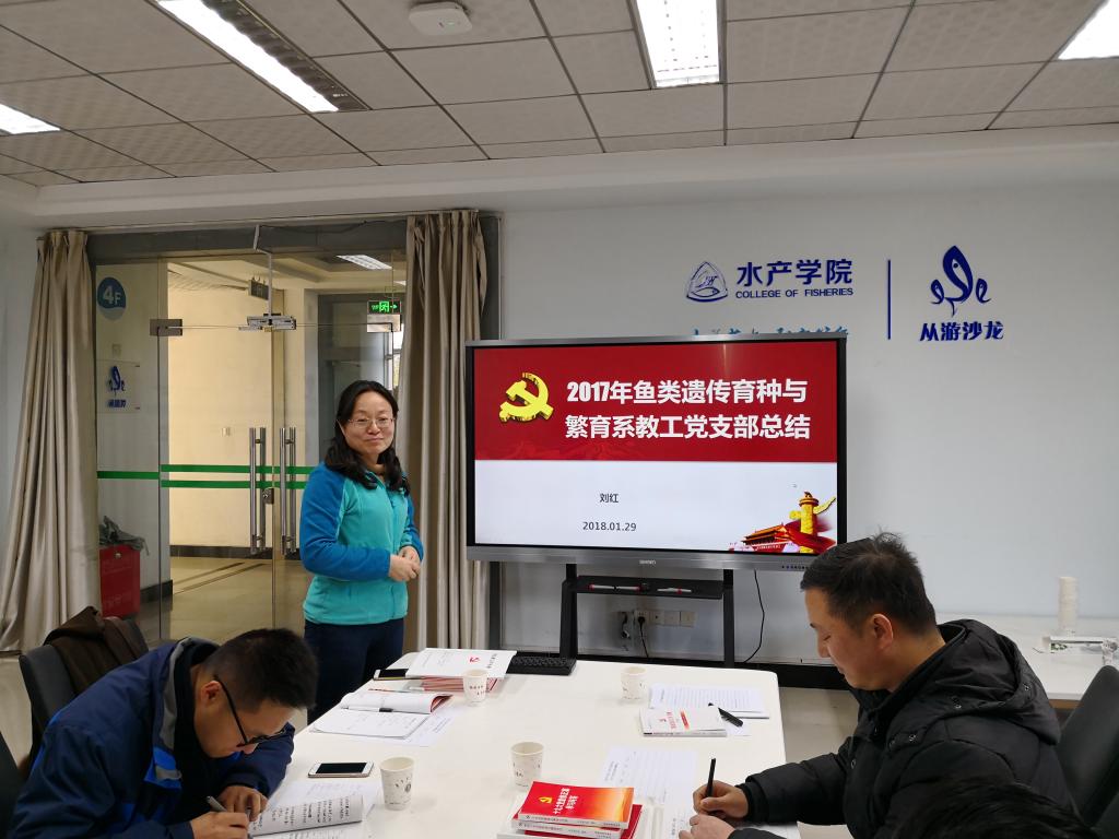 大学生党总支和各教工党支部依次进行了工作汇报。大学生党总支副书记蔡徐涵以“严实活新炼党性”为题汇报了一年来各大学生党支部以严的要求抓学习教育,以实的作风抓党员发展,以活的目标抓支部建设,以新的标准抓特色活动的各项工作。鱼类遗传育种与繁育系教工党支部书记刘红从制度落实、活动经常、效果明显等三个方面介绍了支部的工作开展情况,她重点谈到了支部赴井冈山接受寻梦教育的感悟,认为支部的建设各项工作的开展奠定理论基础和思想保证。鱼类资源与环境系教工党支部书记马徐发介绍了支部开展各项活动把党的章程镌刻在脑海里,把党的制度穿戴在身体上,把党的理论贯彻到实践中,把党的气质高举在鱼池边的各个生动故事。水生动物医学系教工党支部副书记柳阳从三会一课落实、理论学习开展、支部立项活动举行、支部建设效果等几个方面总结了一年的工作。