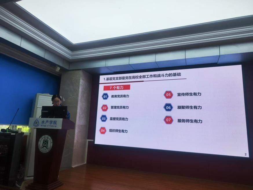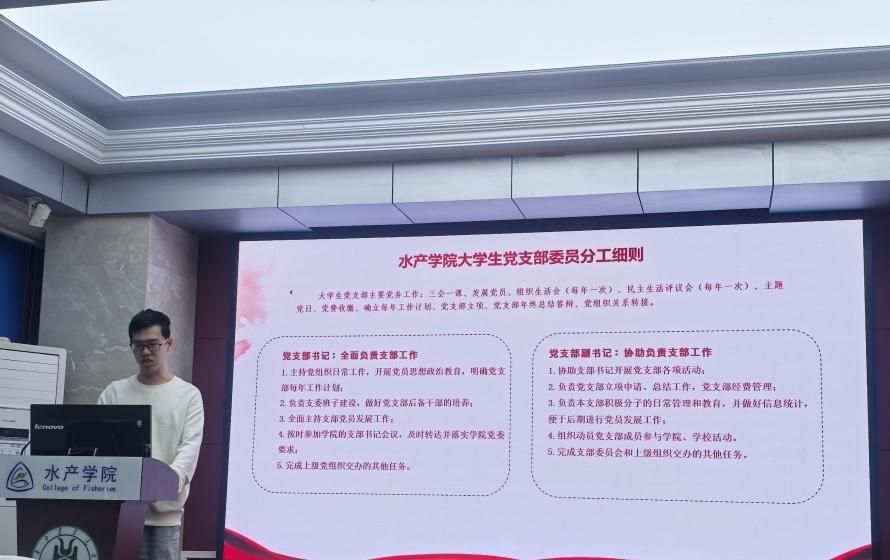 学生党支部委员培训会在水产楼A105报告厅开展。学院党委副书记曹玉琼、辅导员程荟、熊晓磊及各学生党支部委员参加本次培训。