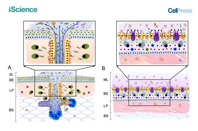 为探究口咽腔黏膜免疫的演化起源及其在低等脊椎动物中的作用机制,徐镇教授课题组以硬骨鱼类虹鳟为研究对象,揭示了鱼类口咽腔黏膜内存在有弥散MALT进一步通过寄生虫感染,发现鱼类口咽腔也能够产生类似于哺乳动物的局部天然和适应性免疫应答。此外,研究团队还发现免疫球蛋白IgT在口腔黏膜抗感染过程中发挥重要的作用,sIgT能够通过上皮细胞分泌的多聚免疫球蛋白受体(pIgR)转移到口咽黏液中抵抗病原的入侵。当受到病原感染时,口咽黏膜中IgT+ B淋巴细胞会发生局部增殖,出现显著性增加。研究结果首次发现MALT在非四足类动物口咽腔中的存在,并且在保护机体、防止病原入侵、维持微生物稳态中发挥重要的作用。