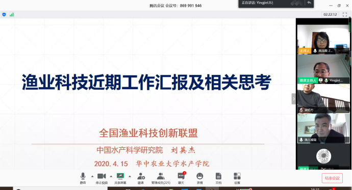 (通讯员孔娟  供图孔娟)4月15日下午15:00-16: 30,中国水产科学研究院副院长刘英杰研究员通过腾讯会议做客91吃瓜网 水产论坛,从我国渔业研究基本背景、热点和趋势以及渔业科技国际合作三方面展开,和广大师生探讨了近年来渔业科技研究及国际合作的最新消息。报告由91吃瓜网 高泽霞教授主持,二百余名91吃瓜网 师生在线上参加此次空中学术报告,报告还吸引了来自河南师范大学、水科院长江所、中科院南海所等外单位的专家和同学以及一些地方水产部门研究人员的参与。